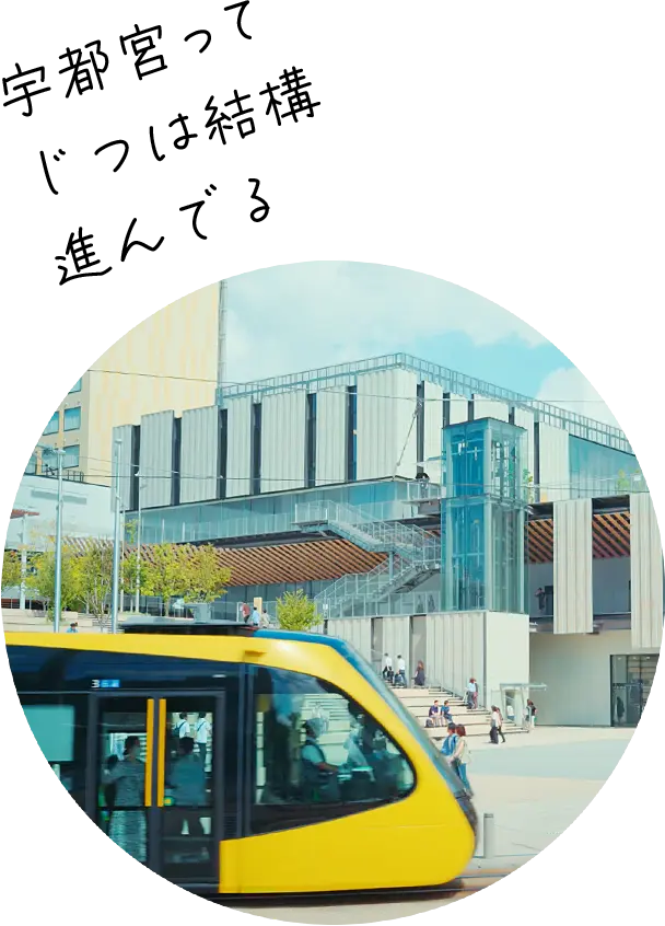 2023年8月に全国で初めて全線新設の「芳賀・宇都宮LRT(ライトライン)」が開通しました。さらには、バス路線もより便利に使いやすく再編され、公共交通を利用して市内のいろいろなところへ、スムーズにアクセスできるようになっています。